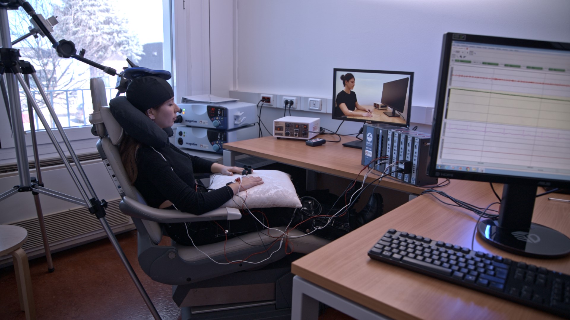 Il Laboratorio di Neurostimolazione offre invece la possibilità di indagare l'attività corticospinale, elettrica, cardiaca e muscolare attraverso tecniche di Stimolazione Magnetica Transcranica (TMS) e percutanea, combinate con la registrazione di indici fisiologici. Questa combinazione di tecnologie avanzate permetterà di approfondire la comprensione dei meccanismi alla base delle funzioni cognitive e motorie.